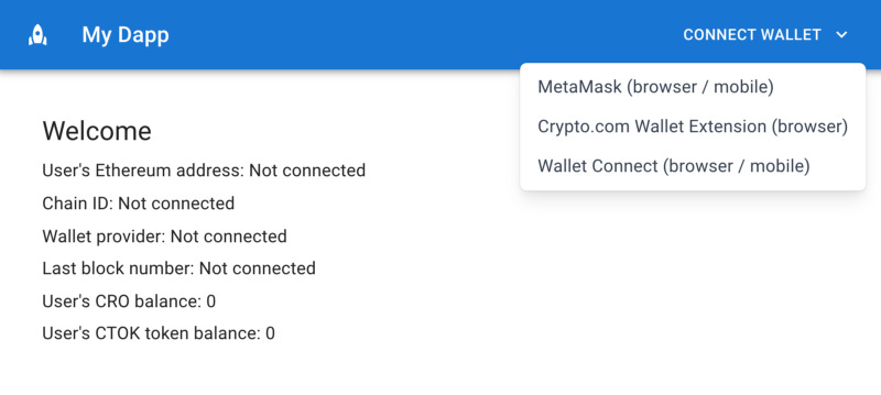 In this blog post, we will review a simple Dapp that connects to Cronos. You can play with the code available at this Github repository to create a user experience that works for you.