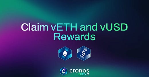 vETH와 vUSD는 Cronos zkEVM 네트워크에서 네이티브하게 수익을 생성하는 토큰입니다. vETH 및/또는 vUSD를 보유한 모든 분들에게 좋은 소식입니다. 오늘부터 이 웹페이지에서 수익 보상을 청구할 수 있습니다!